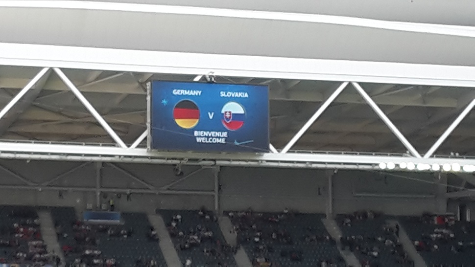 Offiziell wird das Spiel nur in französisch angeboten und der Livestream via Internetradio ist schlecht bzw. gar nicht im Stadion zu empfangen.